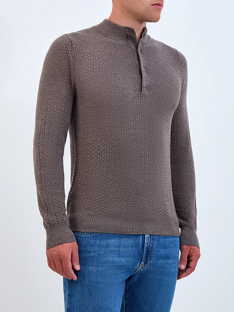 Джемпер из шерсти с фактурным узором и застежкой на пуговицы