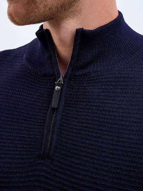Шерстяной джемпер с фактурным узором и застежкой на молнию
