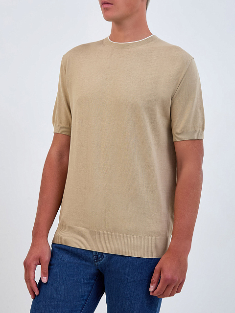 Мужской легкий джемпер из хлопка с контрастной окантовкой ворота CANALI-M купить за 32 410 руб.