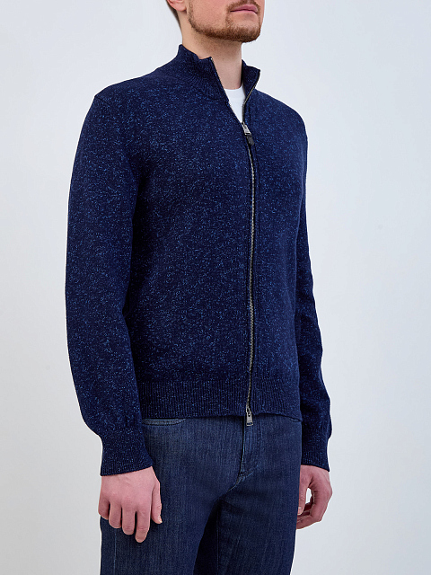 Кардиган из хлопковой пряжи на молнии с кожаным пуллером