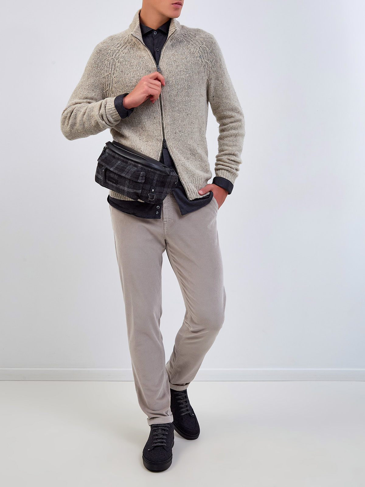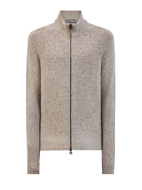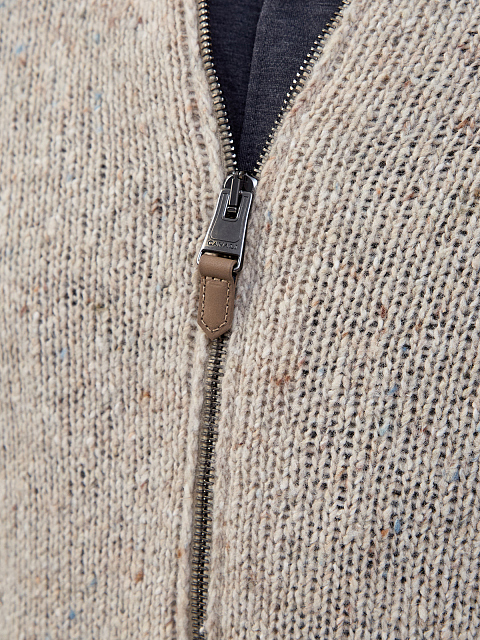 Кардиган из фактурной шерстяной пряжи с кожаным пуллером