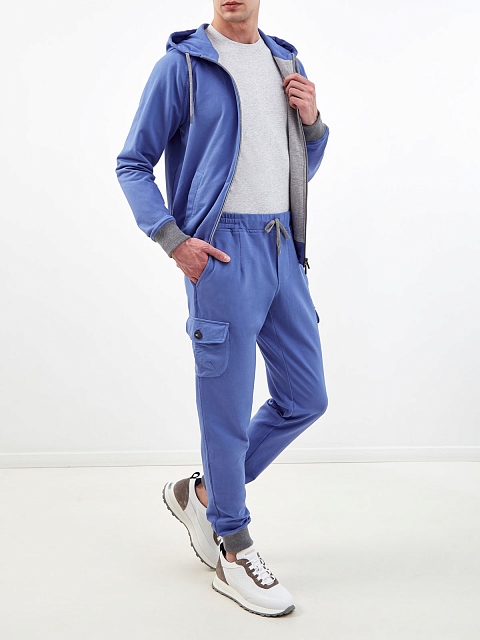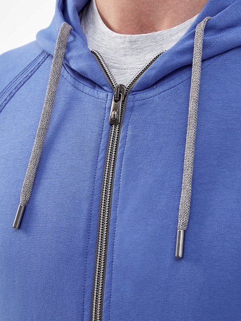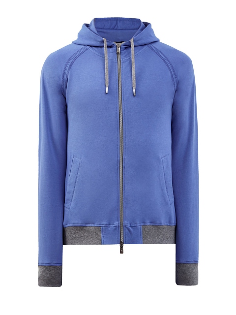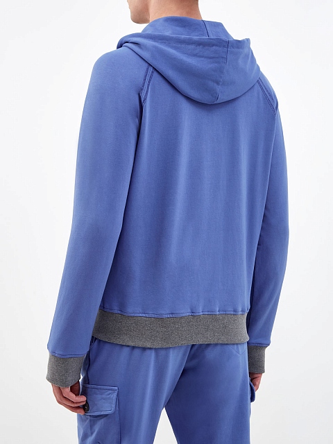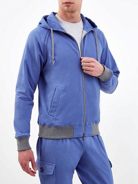 Мужская толстовка от Capobianco выполнена в небесно-синем оттенке. Для создания модели был выбран мягкий хлопковый интерлок — дышащая и гигроскопичная ткань с полностью натуральным составом идеально подходит для занятий спортом и активного отдыха. Минималистичный дизайн сочетает контрастную отделку кромок, прорезные карманы и капюшон на кулиске для дополнительного комфорта. Сделано в Италии.