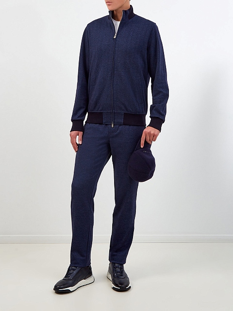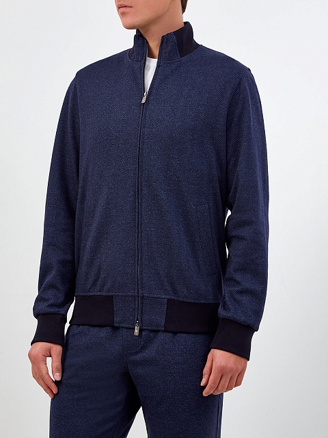 Толстовка из шерсти с шевронным узором и хлопкового трикотажа