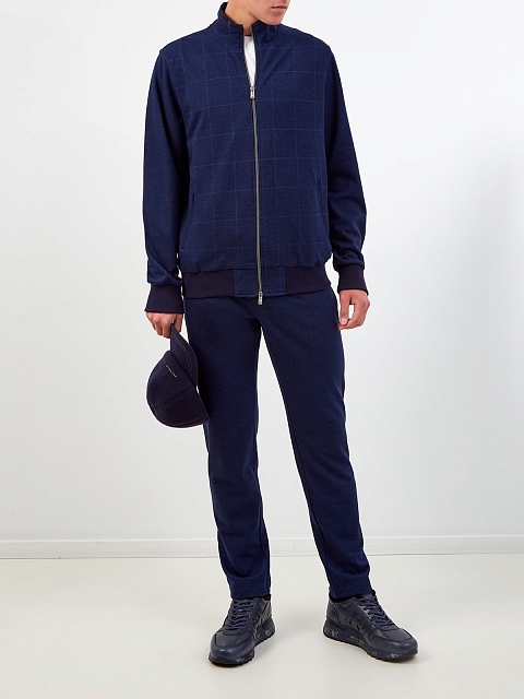 Толстовка из шерсти и хлопка в клетку с эластичными вставками