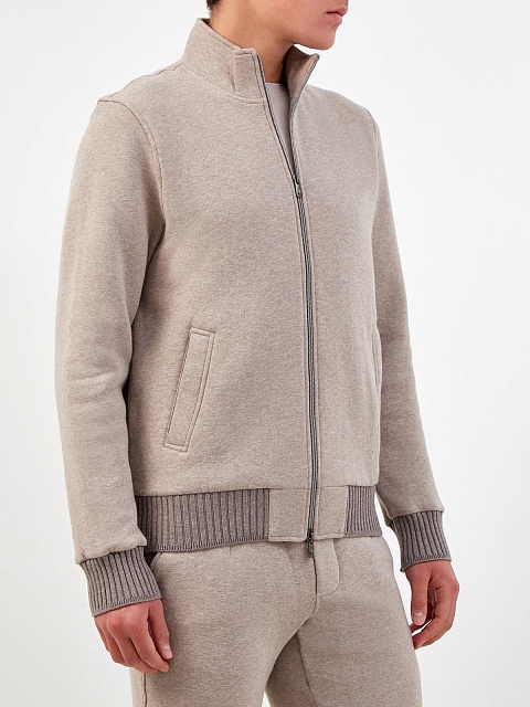 Толстовка из меланжевого хлопка и кашемира с отделкой в резинку