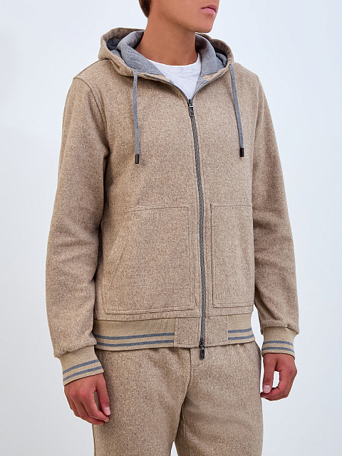 Толстовка из хлопка и шерсти с эластичной отделкой в полоску