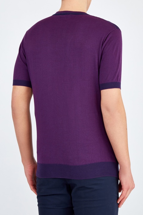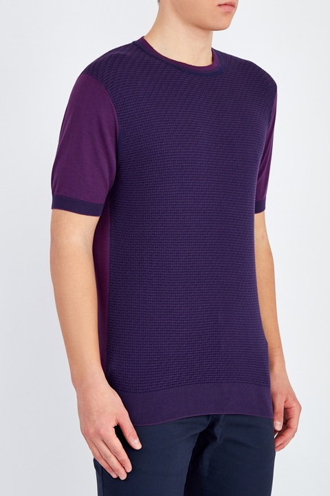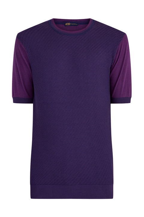 Эффектный мужской джемпер с коротким рукавом от Cudgi создан из тонкой хлопковой пряжи, которая идеально подходит для летнего сезона. Насыщенный пурпурный цвет дополнен глубоким темно-синим оттенком и раскрывается в объемном вязаном узоре на передней планке. Детали: эластичные кромки, круглая пройма горловины с градиентным эффектом.
