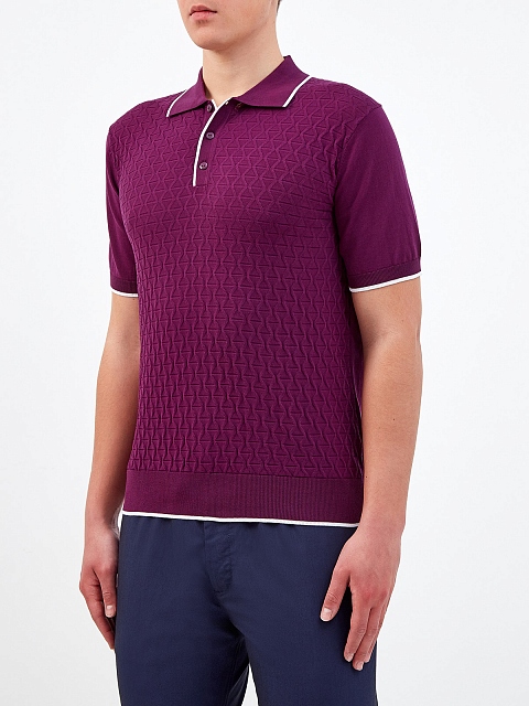 Поло из хлопковой пряжи с фактурным вязаным узором