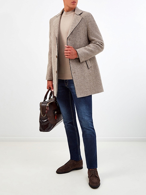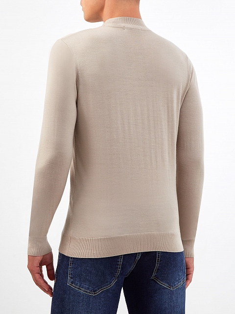 Базовый мужской джемпер от Cudgi полностью выполнен из тонкой и теплой шерстяной пряжи в бежевом оттенке. Лаконичное исполнение позволяет не выходить за рамки дресс-кода, эластичная отделка кромок в рубчик обеспечивает комфортную посадку. Детали: круглый вырез горловины, длинные рукава, классический крой.