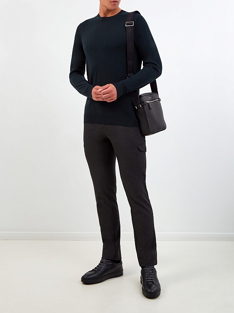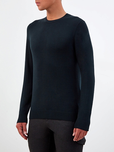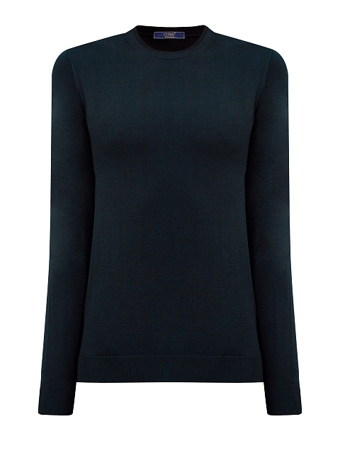 Минималистичный мужской джемпер от Cudgi выполнен из тонкой и теплой шерстяной пряжи в глубоком изумрудном оттенке. Однотонное исполнение позволяет не выходить за рамки дресс-кода, эластичная отделка кромок в рубчик обеспечивает комфортную посадку. Детали: круглый вырез горловины, длинные рукава, слегка облегающий крой.