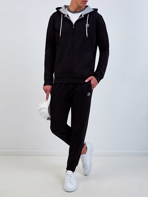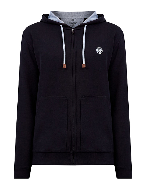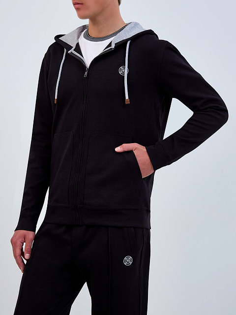 Толстовка из хлопкового футера с вышитым логотипом и капюшоном