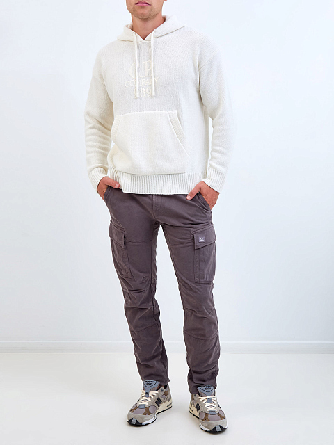 Вязаное худи из овечьей шерсти с объемной вышивкой в тон