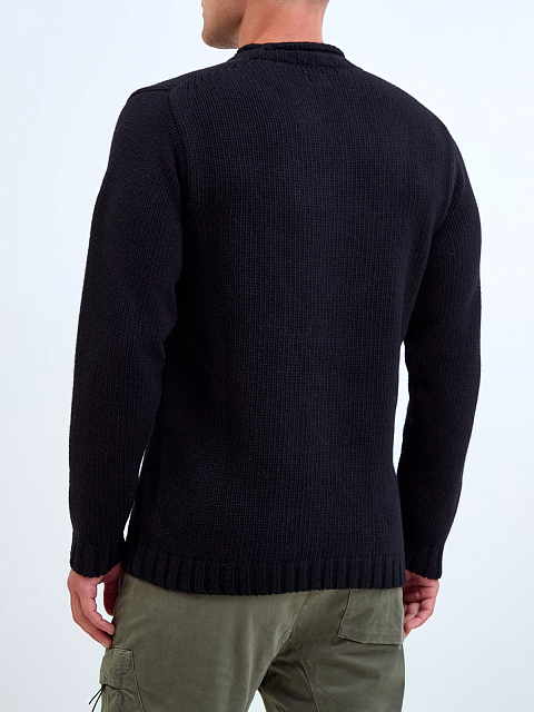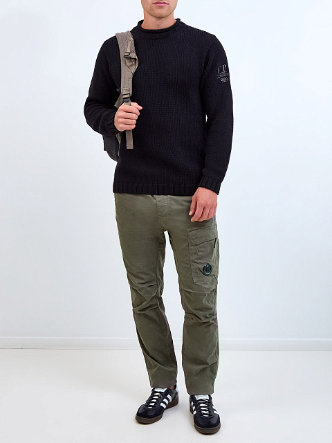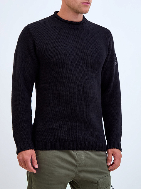 Джемпер облегающего кроя от C.P. Company выполнен из высококачественной овечьей шерсти GRS для оптимального тепла и комфорта. Global Recycled Standard гарантирует уважительное отношение к окружающей среде на всех этапах производства. Модель с отделкой в английскую резинку дополнена объемной вышивкой на рукаве.