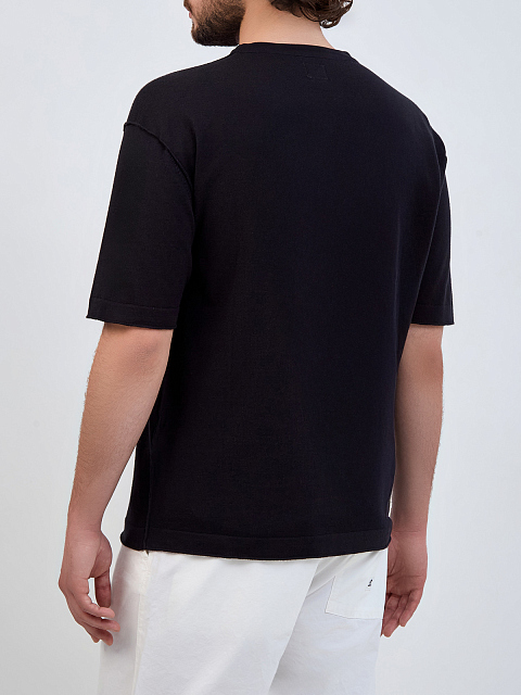 Хлопковый джемпер с патчем и эффектом необработанных швов