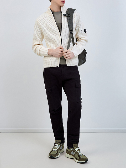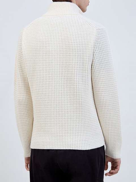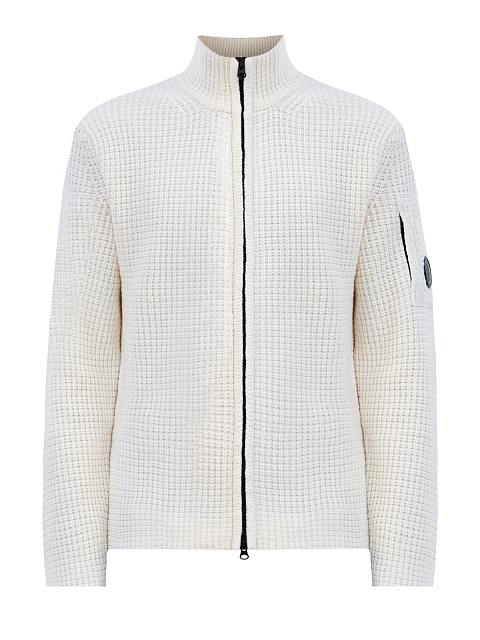 Шерстяной кардиган фактурной вязки с линзой на рукаве