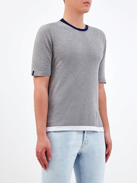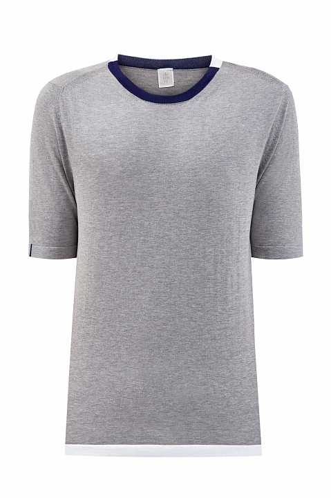 Хлопковый джемпер с короткими рукавами и контрастным кантом