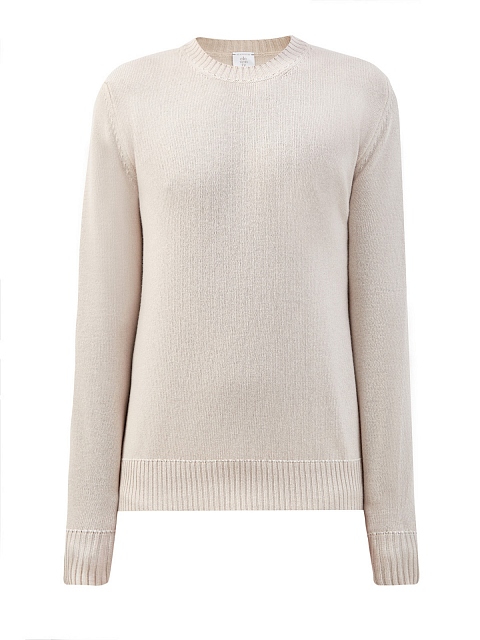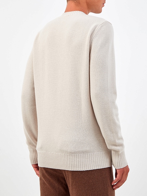 Мужской джемпер от Eleventy создан из мягкой пряжи на основе шерсти и кашемира в кремовом оттенке. Благодаря уникальным свойствам натурального материала, модель поддерживает температуру тела на оптимальном уровне и сохраняет ощущение комфорта. Детали: эластичная отделка кромок в рубчик, круглый вырез горловины. Сделано в Италии.