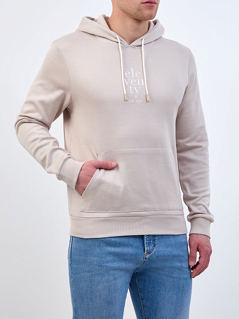 Хлопковое худи с минималистичным принтом и капюшоном на кулиске