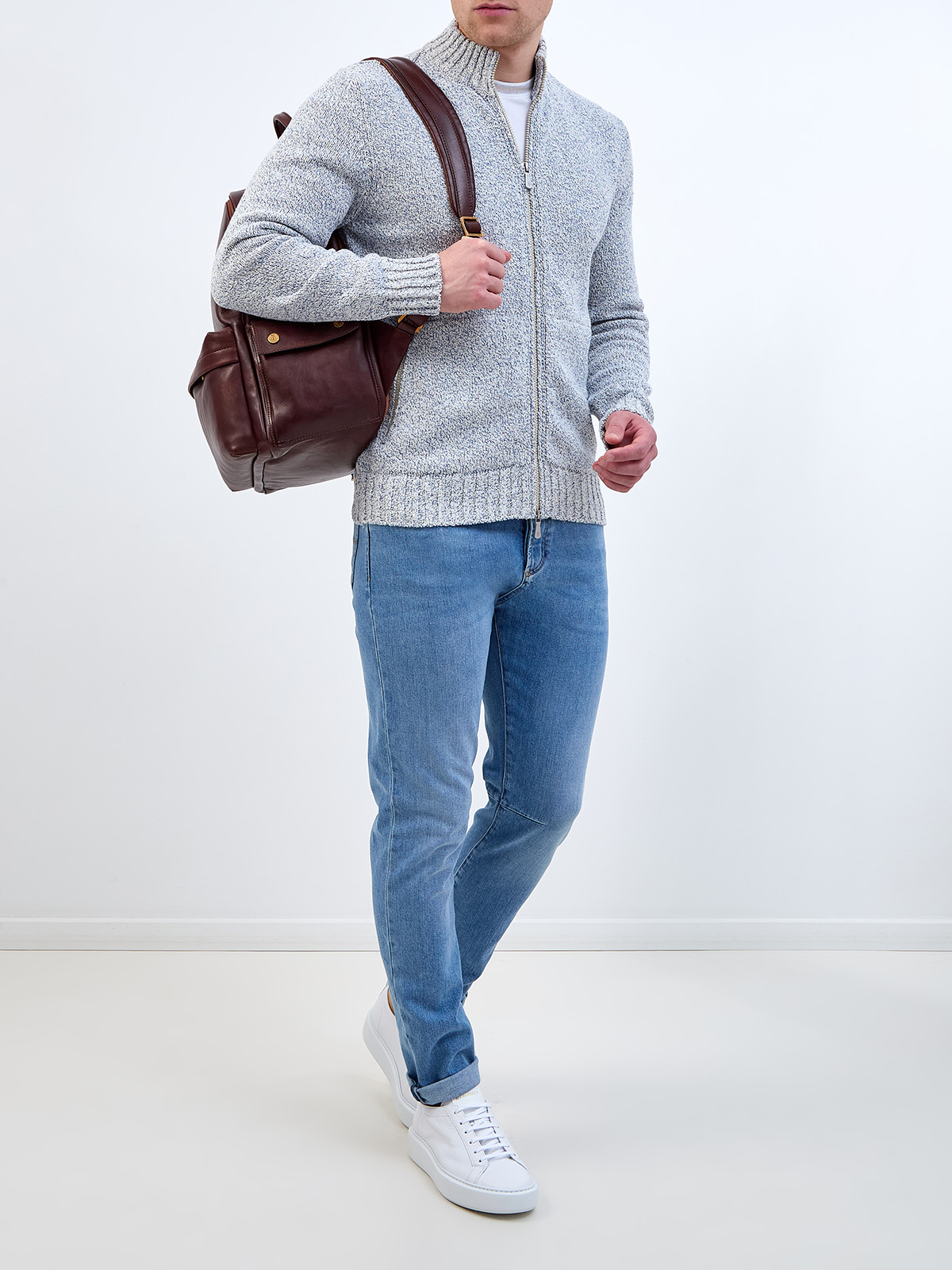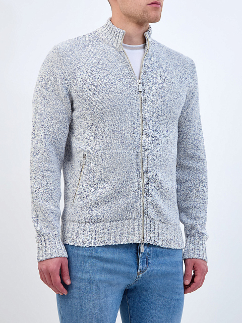 Кардиган из фактурной хлопковой пряжи с застежкой на молнию