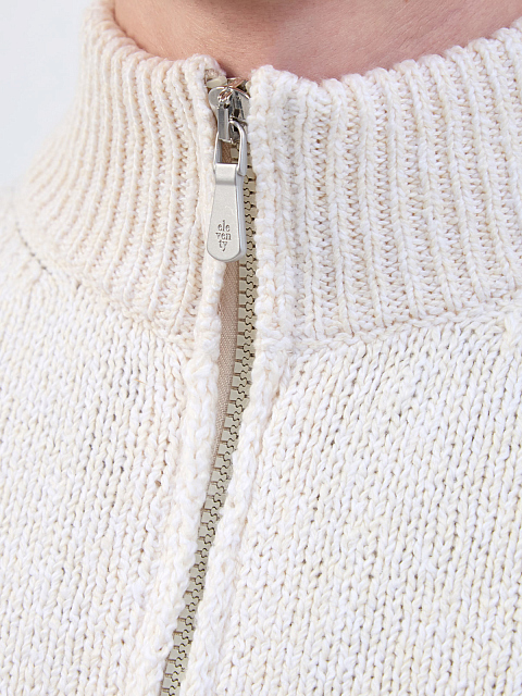 Элегантный мужской кардиган от Eleventy выполнен из мягкой хлопковой пряжи в кремовом оттенке. Эластичные кромки английской вязки и отделка манжет и нижнего края в полоску вносят неформальный акцент в повседневный образ. Изделие дополнено застежкой на молнию на передней планке, брендированный пуллер завершает дизайн. Сделано в Италии.