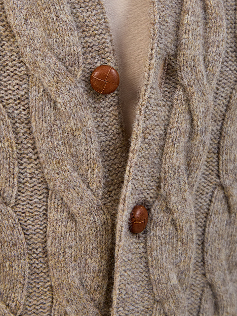 Шерстяной кардиган аранской вязки с застежкой на пуговицы