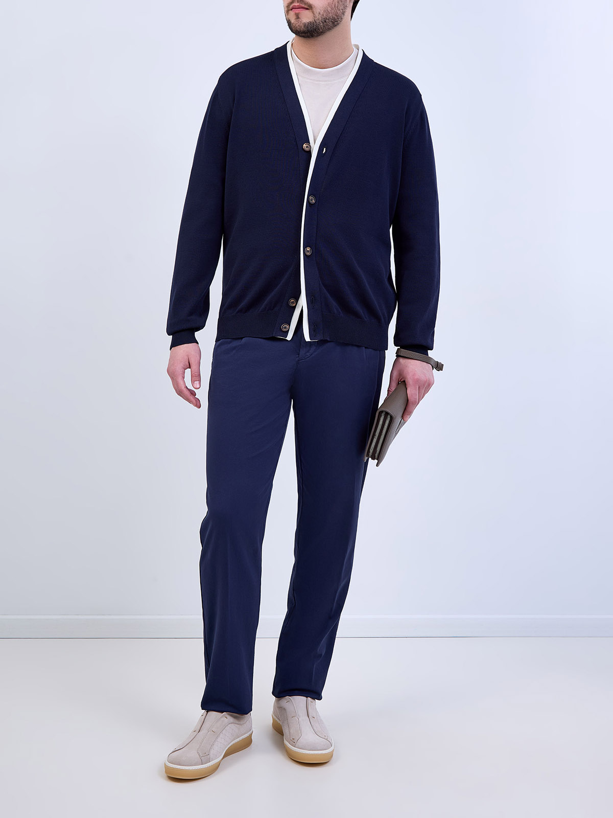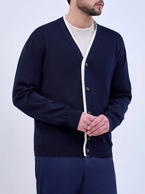 Хлопковый кардиган с V-образным вырезом и окантовкой