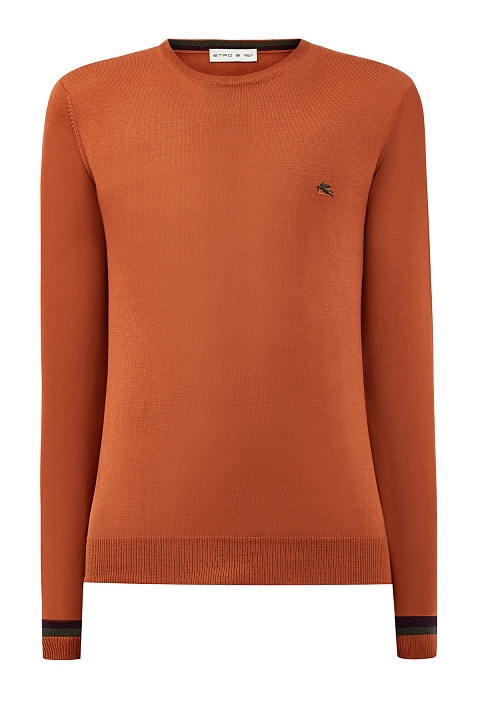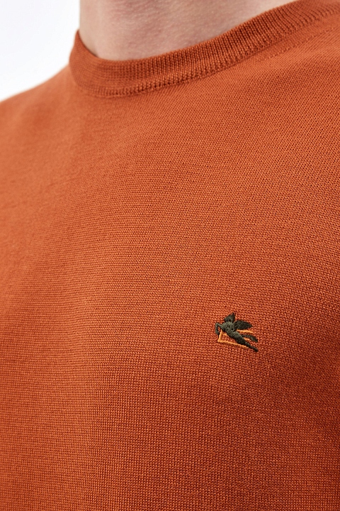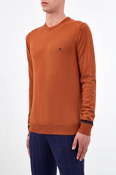 Минималистичный мужской джемпер от Etro. Изделие выполнено в теплом оттенке «охра», который органично дополнит образы как в деловом, так и повседневном расслабленном стиле. Полностью натуральный состав делает модель идеальной для холодного времени года. Детали: вышитый логотип в виде пегаса, круглый ворот, контрастная эластичная отделка кромок. Сделано в Италии.
