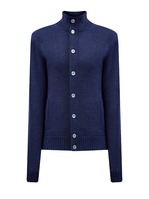 Кардиган из шерстяной пряжи с высоким воротом английской вязки