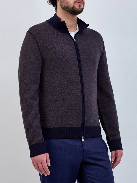 Кардиган из шерсти с контрастным кантом и застежкой-молнией