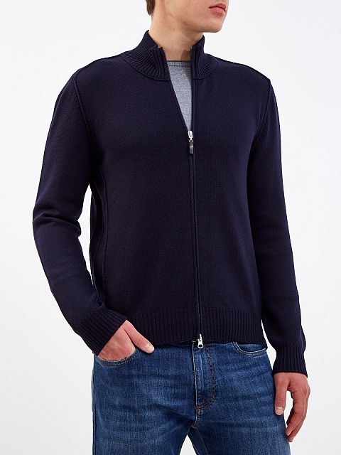Шерстяной кардиган с объемными швами и застежкой на молнию