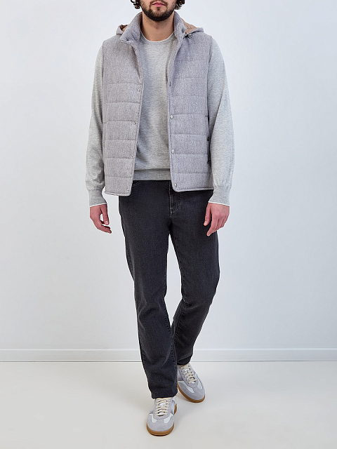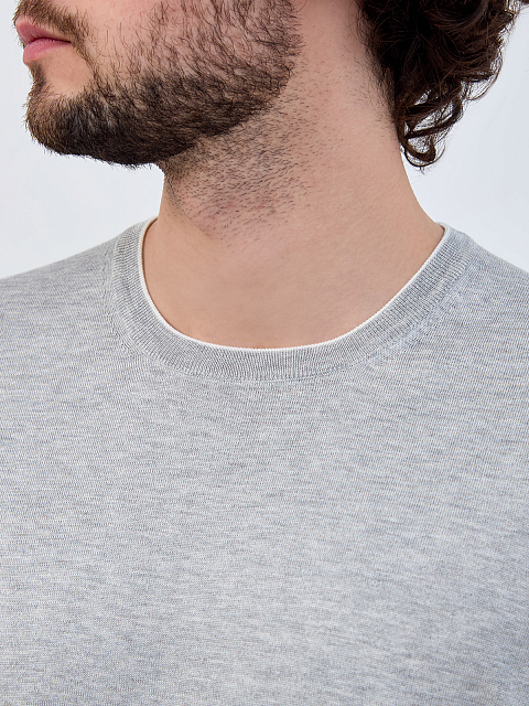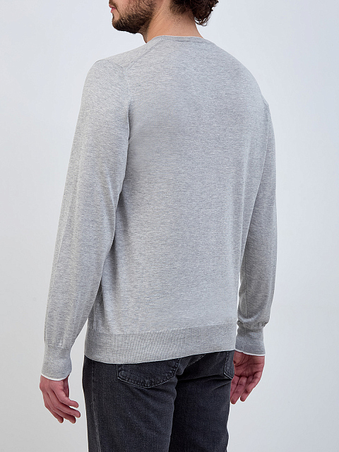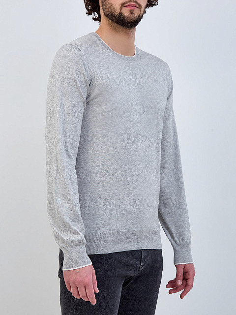 Джемпер из меланжевого шелка и хлопка с контрастным кантом