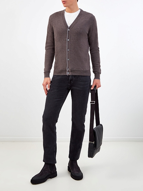 Шерстяной кардиган с V-образным вырезом и накладками