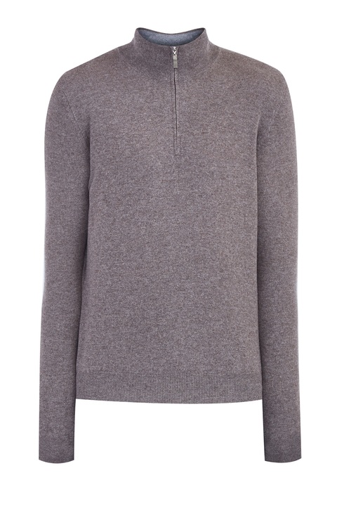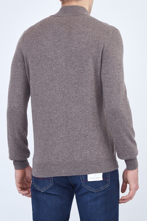 Джемпер расслабленного кроя от Gran Sasso выполнен из плотной кашемировой пряжи в холодном оттенке какао. Натуральный материал благодаря своим свойствам обеспечивает комфорт и защиту от низких температур. Модель оснащена высоким плотным эластичным воротом, а также скрытой под планками молнией с перламутровым пуллером. Сделано в Италии.