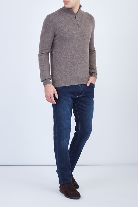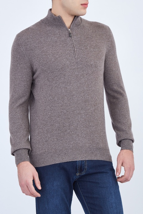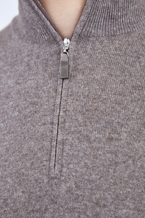 Джемпер из кашемира песочного цвета с молнией у высокого ворота