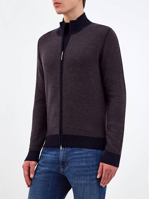 Кардиган из натуральной шерсти с трикотажной отделкой кромок