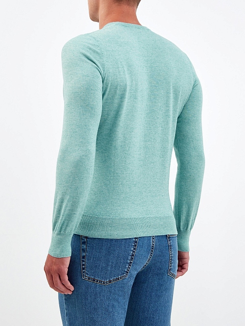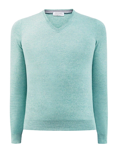 Базовый джемпер от Gran Sasso представлен в пастельном ментоловом оттенке. Для создания изделия была выбрана мягкая хлопковая пряжа с добавлением нитей кашемира — полностью натуральный состав делает универсальную вещь еще более комфортной. Детали: V-образный вырез, длинные рукава, эластичная отделка манжет и нижнего края. Сделано в Италии.