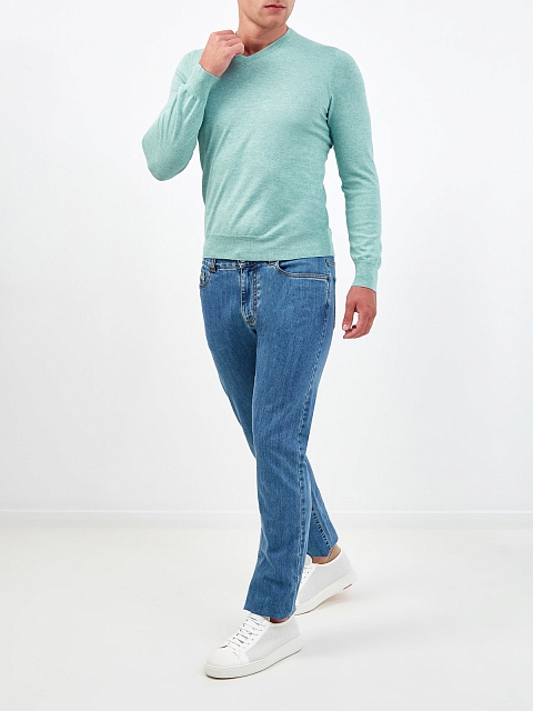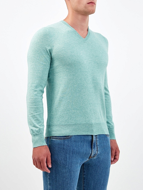 Хлопковый джемпер с нитью кашемира с V-образным вырезом
