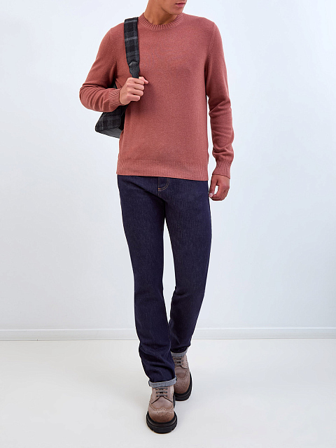 Джемпер из мягкой шерсти и кашемира с отделкой английской вязки