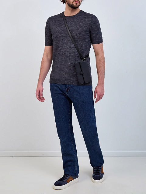 Легкий джемпер из меланжевого льна с короткими рукавами