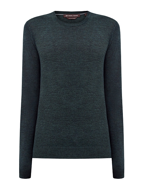 Классический джемпер от Michael Kors представлен в базовом изумрудном оттенке. Тонкая шерстяная пряжа и техника плотной чулочной вязки делают модель компактной, легкой и теплой одновременно. Эластичная отделка манжет и нижнего края обеспечивают посадку по фигуре. Детали: длинные рукава, слегка облегающий силуэт, круглый вырез.