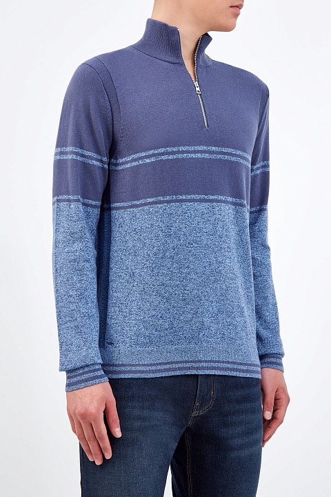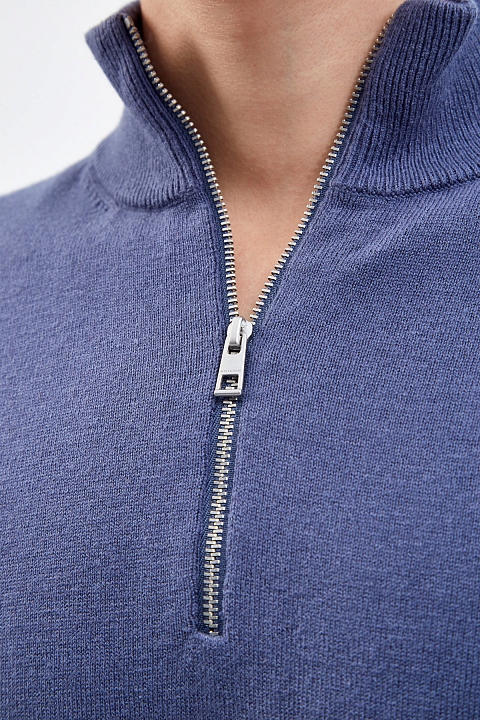Джемпер из хлопковой пряжи с высоким воротом-поло на молнии