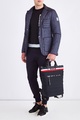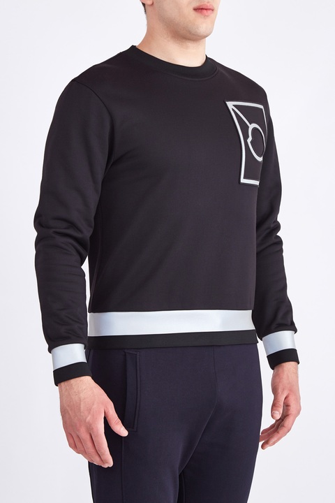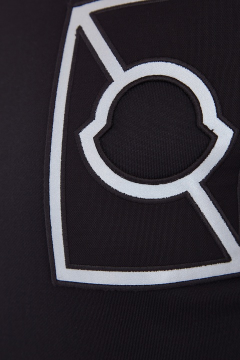 Эффектный мужской свитшот из коллаборации бренда Moncler и дизайнера Крейга Грина «Moncler C» выполнен из эластичного хлопка в базовом черном цвете. Особенностью модели стали покрытые светоотражающим материалом «Reflex» манжеты рукавов и нижняя кромка, а также нашивка из холщовой ткани с логотипом коллекции на передней планке. Круглый ворот горловины завершает смелый образ в спортивном стиле.