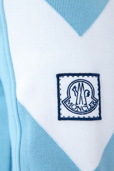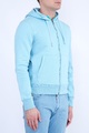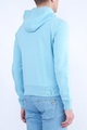 Мужская толстовка Moncler в спортивном стиле из коллекции Gamme Bleu, созданной дизайнером Томом Брауном. Модель выполнена из легкого мягкого хлопкового флиса нежно-голубого цвета. Модель дополнена глубоким капюшоном на кулиске, накладными карманами и застежкой на молнию, вшитую в центральную планку. Длинные втачные рукава завершены эластичными манжетами, гармонирующими с кромкой. На одном из рукавов — контрастная вставка и фирменный лейбл.