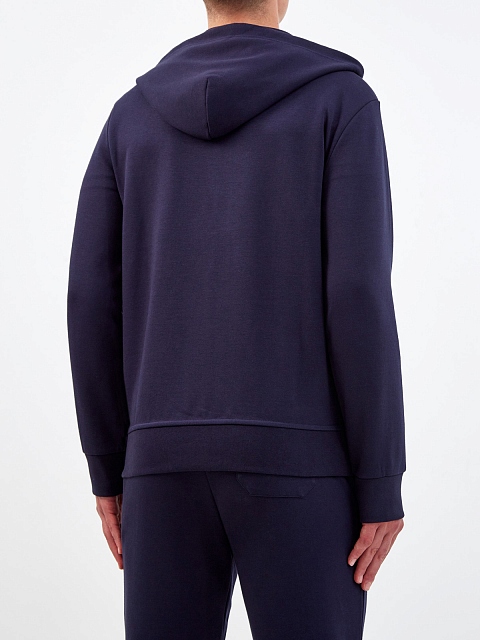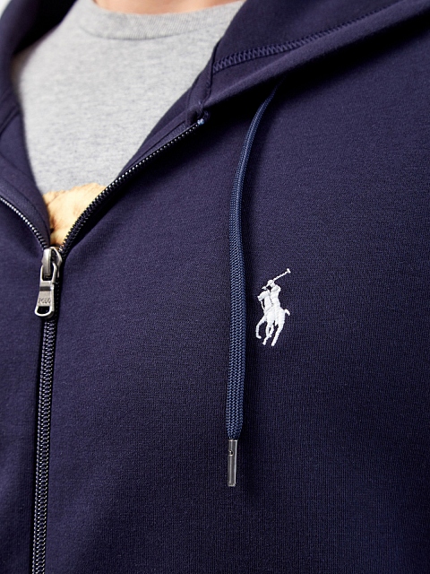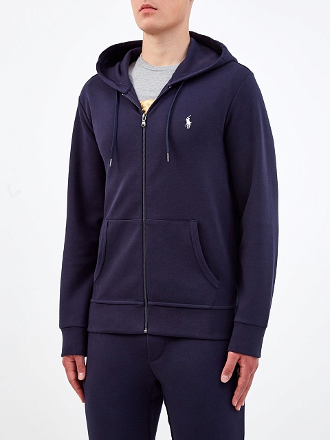Универсальная мужская толстовка от Polo Ralph Lauren выполнена в оттенке ночного неба из гладкой пряжи двойного кручения. Отделка манжет и нижнего края в рубчик обеспечивает комфортную посадку по фигуре. Модель в спортивном стиле дополнена капюшоном на регулируемой кулиске и накладными карманами. Детали: брендированная фурнитура, контрастный вышитый логотип, застежка на молнию.
