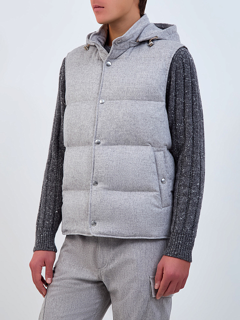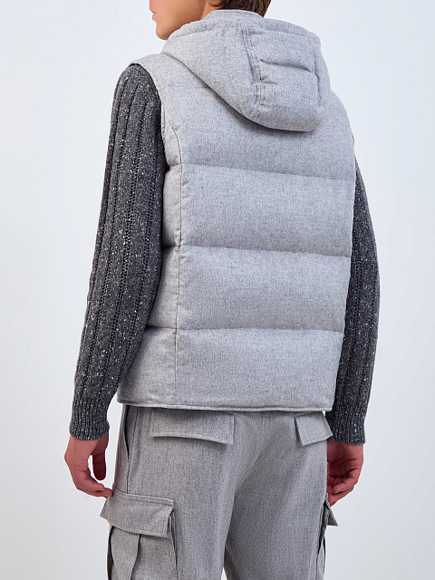 Пуховый жилет из кашемира и шелка со съемным капюшоном