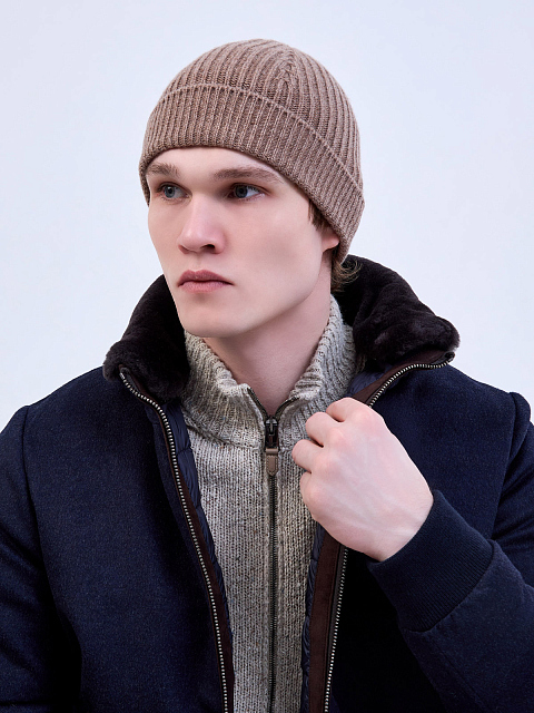 Шапка из меланжевого кашемира с широким отворотом