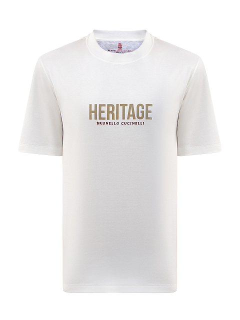 Минималистичная футболка от Brunello Cucinelli выполнена из хлопка джерси в белом цвете. Дышащий материал с полностью натуральным составом идеально подходит для создания повседневных образов, лаконичный принт Heritage отражает философию Модного Дома. Детали: круглый вырез горловины, короткие рукава, простроченные швы. Сделано в Италии.