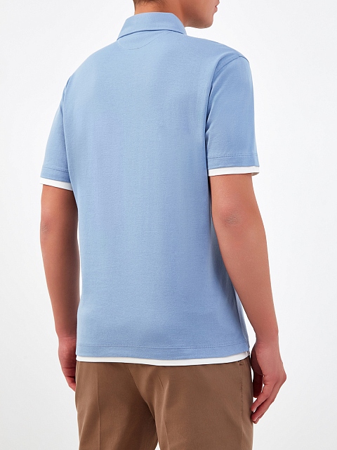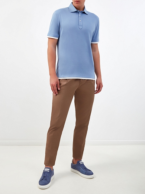 Поло из хлопка и льна с контрастной окантовкой