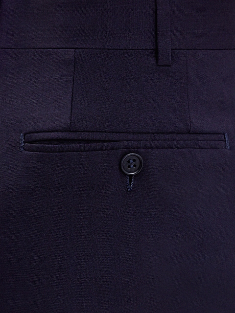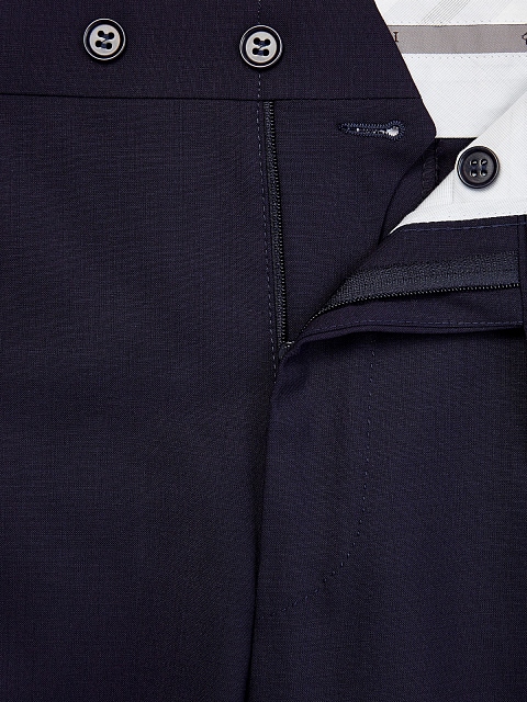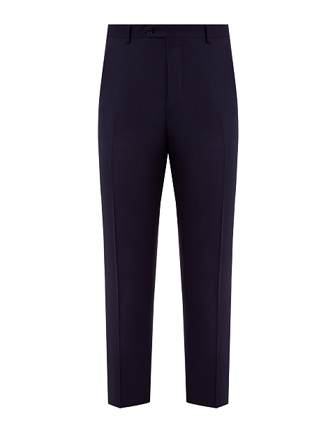 Элегантные брюки от Canali выполнены из гладкой шерстяной ткани в оттенке индиго. Эластичные волокна в составе делают образ максимально комфортным. Пояс split-waistband и заложенные складки придают изделию нотку фирменной итальянской роскоши, а крой с вытачками обеспечивает посадку по фигуре. Детали: карманы с клапанами на спинке, прорезные карманы по бокам, асимметричная застежка. Сделано в Италии.