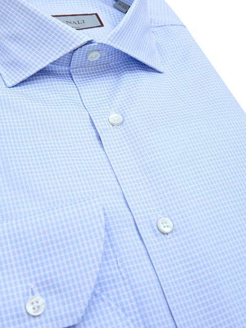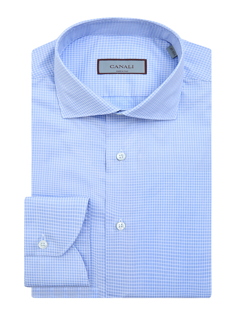 Рубашка из гладкого хлопкового поплина с принтом в клетку от Canali выполнена в лаконичной бело-голубой гамме. Классический крой делает модель идеальным решением для создания комфортных аутфитов в рамках дресс-кода. Детали: отложной ворот, пуговицы из перламутра. Сделано в Италии.